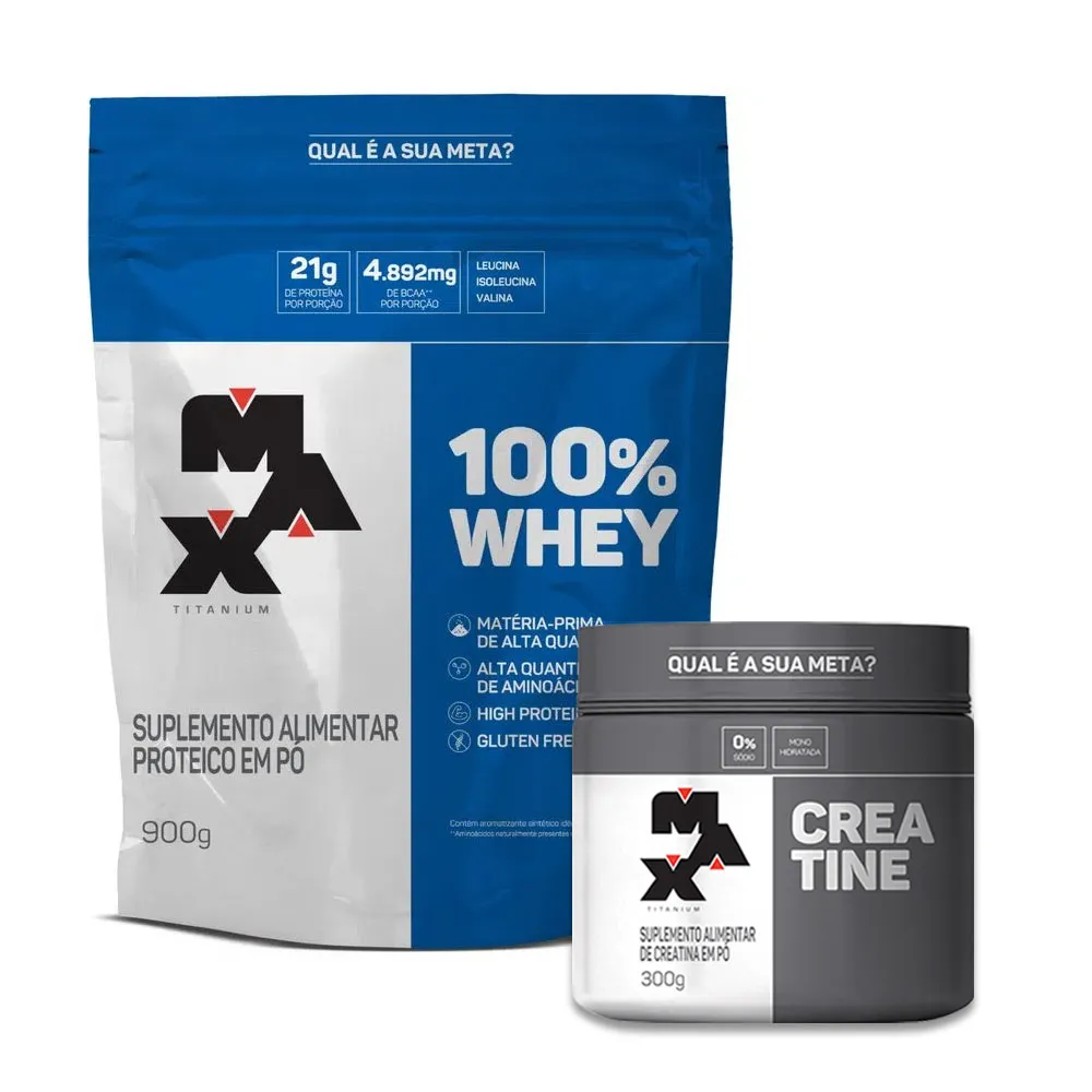 Esse kit contém: 100% Whey 900g (sabor a escolha) + Creatina 300g